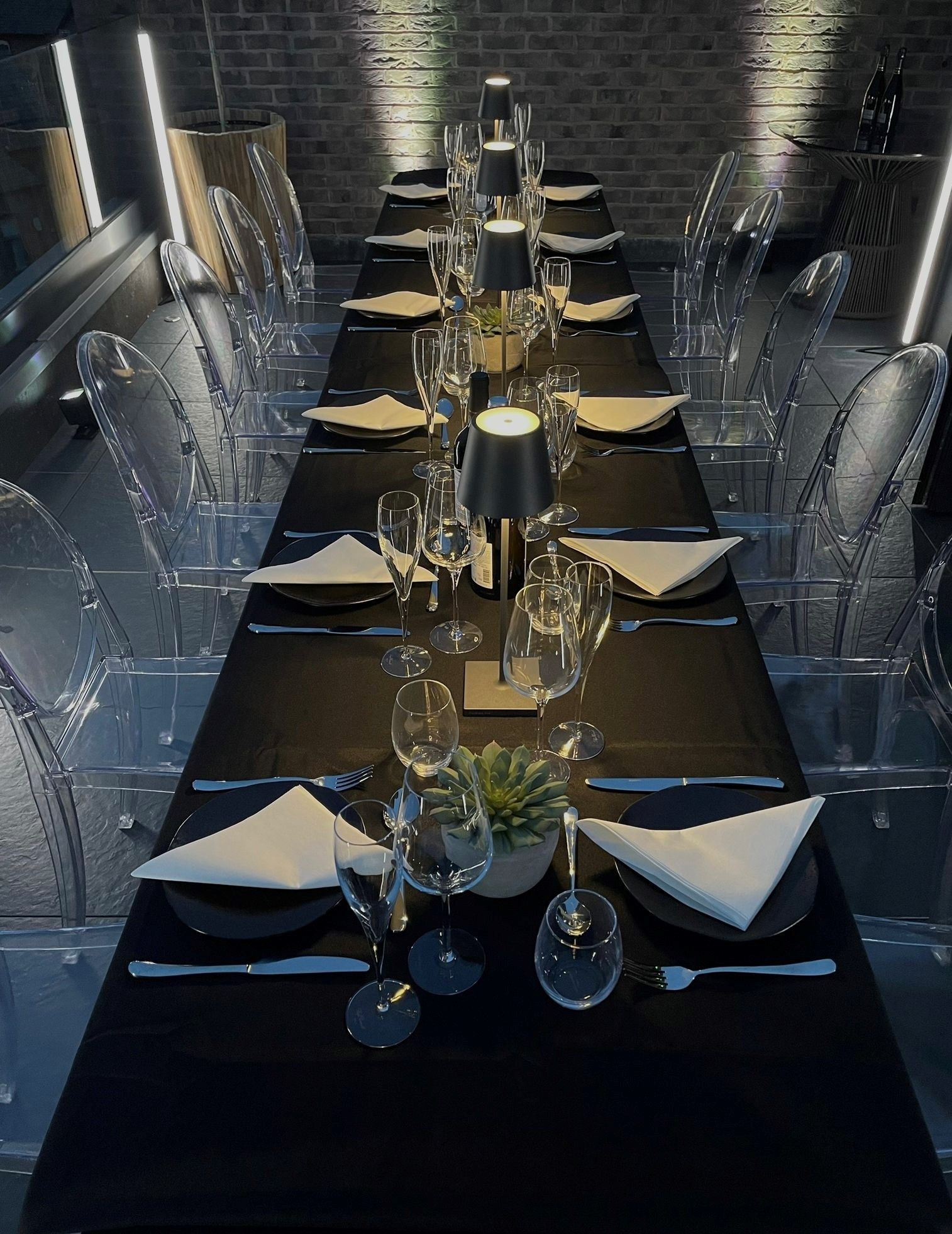 - Table linen in black or white