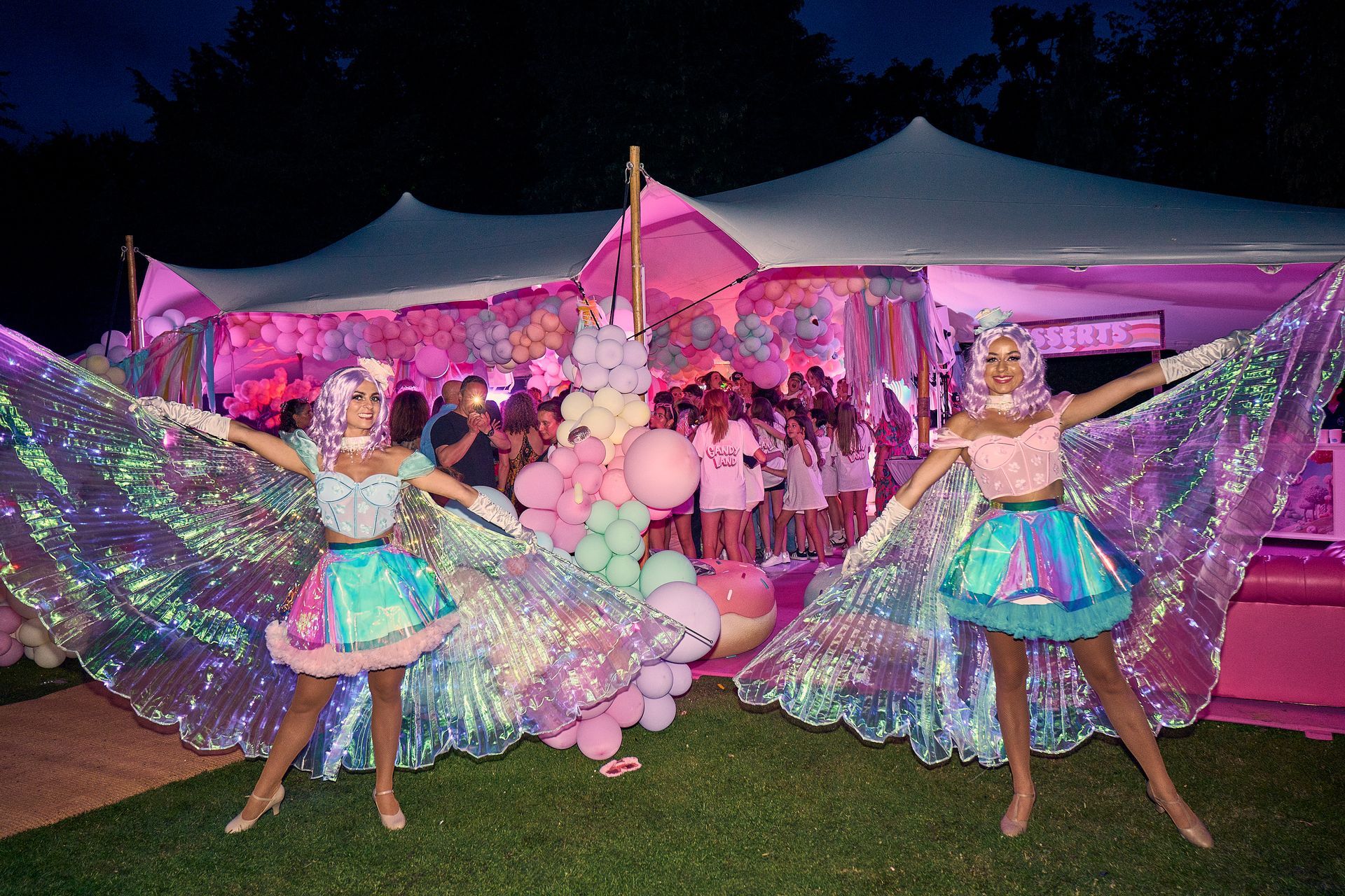 Candy themed lighting design and audio solution for the evening party.